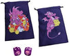 This drawstring bag is made of purple fabric, lined with black fabric, and holds more than 100 assorted dice! Illustrated by Lar DeSouza, this dragon-adorned bag will be a valuable...
