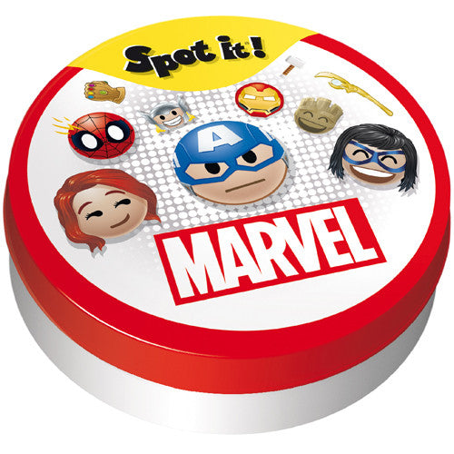 This new version of Spot It! combines different characters from Marvel comics with one of the most emblematic family games. Players try to spot the single matching symbol between two cards in a playful battle of speedy observation. Featuring some of the most iconic Marvel Super Heroes: Iron Man, Captain America, and Black Widow!